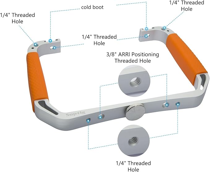 - MULTIPLE MOUNTING METHODS: The bracket contains Cold shoe mount, 1/4" and 3/8" nut mount. You can choose the mounts to suit your needs. Wide range of use, not only for diving, but also for live broadcasting, shooting video, and other photographic needs.