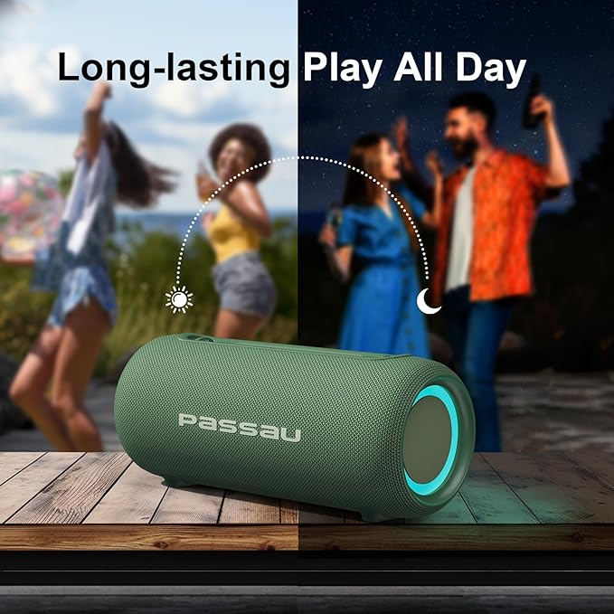 Passau Portable Bluetooth Speakers 40W Peak Loud Stereo Sound, Passive Radiators-Deep Bass, All Day Playtime, Adjustable Strap, BT5.3, IPX5 Wireless Speaker RGB Lights for Indoor Outdoor-Green