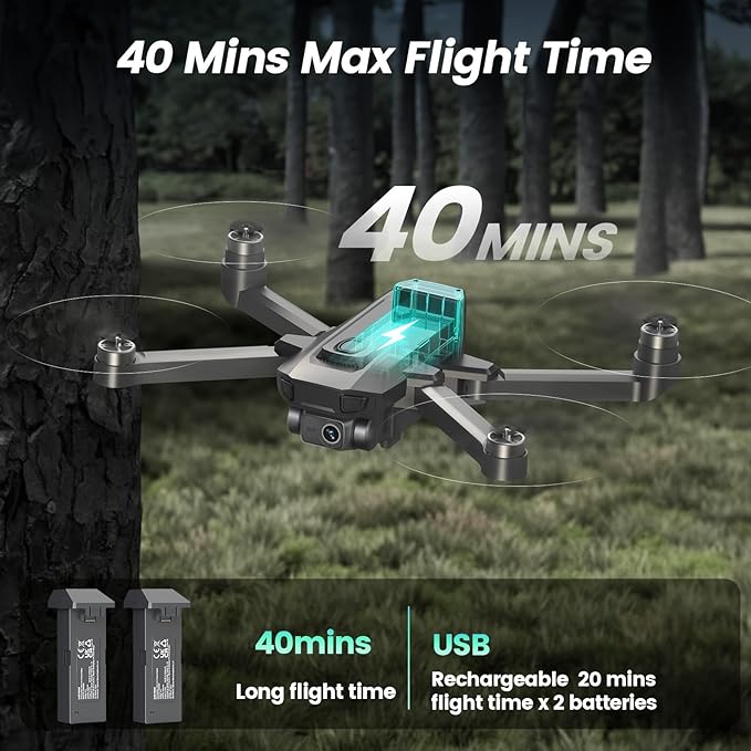 - 【40 mins Flight Time】This drones with camera for adults 4k is equipped with 2 rechargeable modular batteries, extending the flight time to 40 minutes (20 minutes per battery). The 4k drone with camera uses powerful brushless motors for smoother flight, faster speeds, lower noise, and longer lifespan compared to traditional motors. This will be the best camera drone for adults and beginner