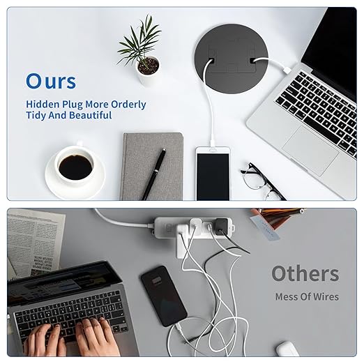 - Innovative appearance:Unique hidden outlet, without unsightly socket protrusions during use, is both convenient and aesthetically pleasing.