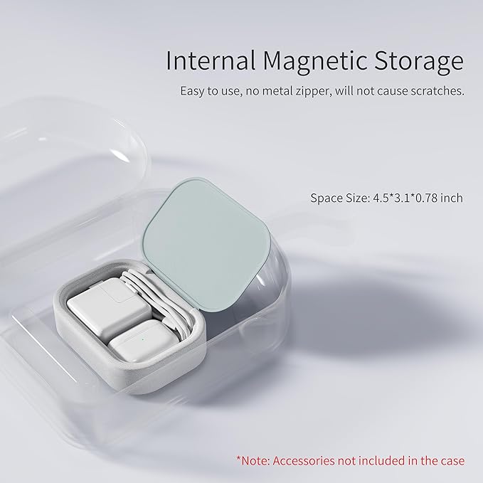 - [Internal Storage] - There is a magnetic storage space inside that can store AirPods, batteries, chargers etc, without worrying about zippers scratching your Vision Pro.