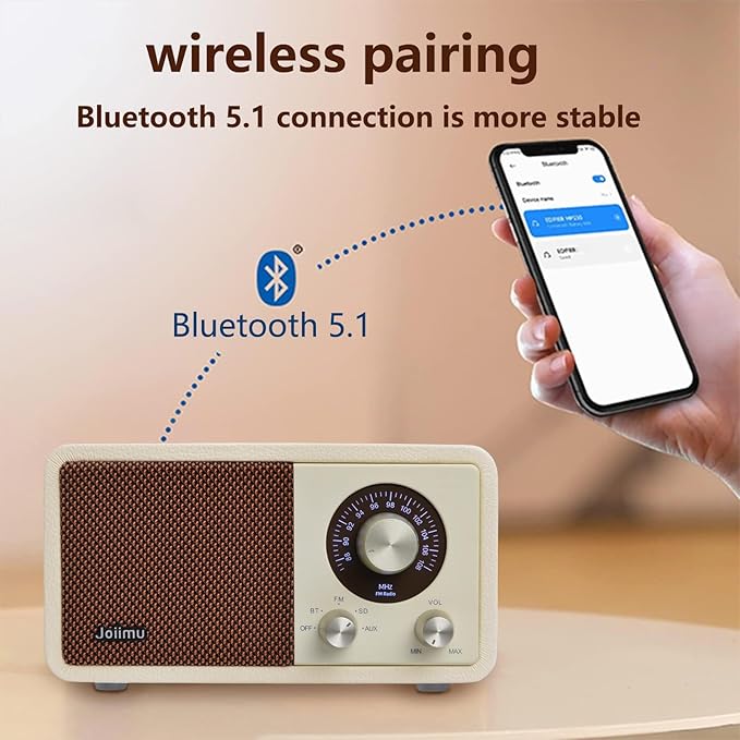 - Advanced Bluetooth Technology: Featuring bluetooth 5.1, this FM radio offers a wireless range of up to 10 meters (32 feet), ensuring seamless connectivity to your devices. Listen to your favorite music playlists or podcasts effortlessly through the Bluetooth radio.