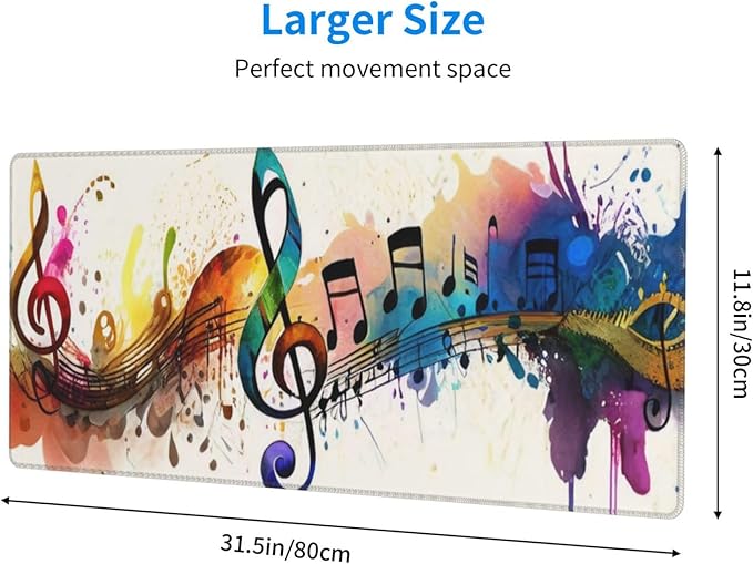 Gaming Mouse Pad, Large Non-Slip Rubber Base Mousepad, Keyboard Mouse Mat, Desk Pad with Stitched Edges, 31.5x11.8inch, Music Note
