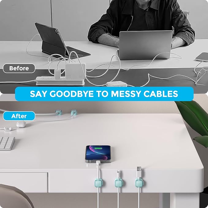 - NO-RESIDUE: Utilizes the acrylic adhesive that allows the cable organizer to stick firmly to any flat surface, such as wooden tables, glass, or ceramic tiles, etc Meanwhile removable adhesive won't damage your desktop, wall, no residue left after removal