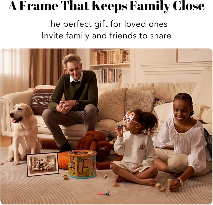 - Share Easily, Store Confidently: One frame connects the entire family, regardless of the distance. Share photos, interact remotely, and view photos offline, complemented with hassle-free built-in 32GB memory