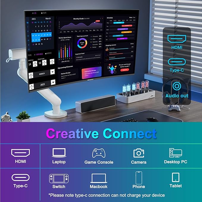 - Ports and Speakers:1*USB Type-C 丨1*HDMI 1.4 丨2*2W Built-in Speakers for Daily Use.