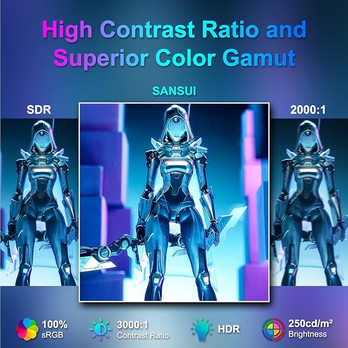 - Display Color: 100% sRGB丨 3000:1 Contrast Ratio丨250Nits Brightness丨16.7M display colors