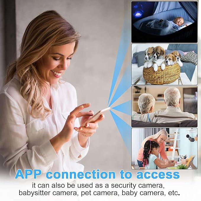 - ✅【Eye at Anytime】: It can be viewed on your phone after setting WiFi for the camera(only works with 2.4GHz), which makes it convenient for you to know what happens remotely. Download the App on your phone and connect it with router Wi-Fi. Then view video on the App remotely from anywhere in the world.The item is a pure video camera only image.(No sound recording function)