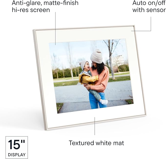 Aura Walden 15" WiFi Digital Picture Frame | Wirecutter's Best Digital Frame for Gifting | Send Photos from Your Phone | Quick, Easy Setup in Aura App | Free Unlimited Storage | White Clay