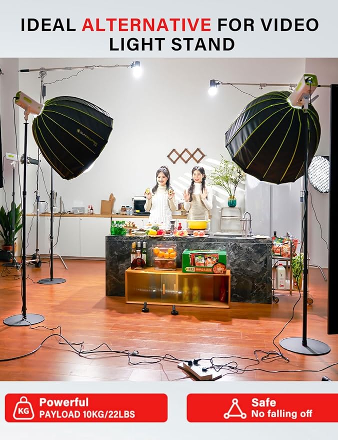- ⭐⭐【Tip-Resistant Photography Light Stand】: Engineered with a 5mm aluminum chassis, this Light Stand with weighted base slides under desks and tight corners (15.75" diameter) for ultra-close subject positioning while anchoring 22-lb studio lights without tipping.
