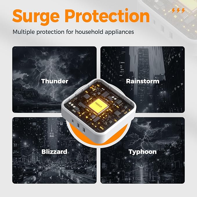 Surge Protector Outlet Extender, TESSAN Multi Plug Adapter with 4 Outlet Splitter and 3 USB (1 USB C), Multiple Plug Expander for Home Office Dorm Room Essentials