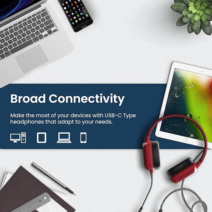 Brenthaven Headphones Wired | USB C On-Ear Rugged 2 Adjustable Headphones with Long Tangle Free Cord - Lightweight Durable and Drop Tested School Supplies for Kids Travel and K-12 Students - Red