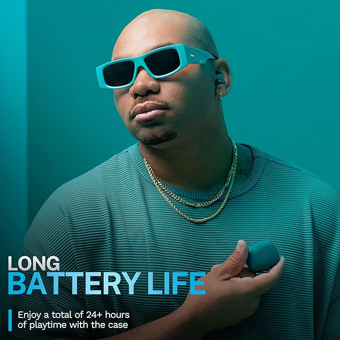- Long Battery Life: Enjoy up to 7+ hours of playtime on a single charge for each earbud, and a total of 24+ hours of playtime with the case. Plus, conveniently recharge the case with its integrated USB-C charging cable, allowing you to get an hour of playtime with just 10 minutes of charging.