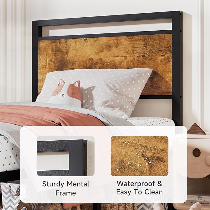Z-hom Upgraded Twin Bed Frames, Heavy Duty Metal Sturdy Bed Frame Twin Size with Modern Wood Headboard & Footboard, Stable Platform Bed Furniture Bed Storage, No Noise, No Box Springs, Vintage Brown