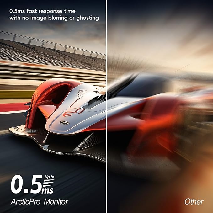 - [180Hz Smooth Performance] With 180Hz refresh rate, 0.5ms MPRT response time and Low Blue Light, there is no image blurring or ghosting, ArcticPro monitors delivers smooth, tear-free and eye care visuals, providing you better gaming and viewing experience