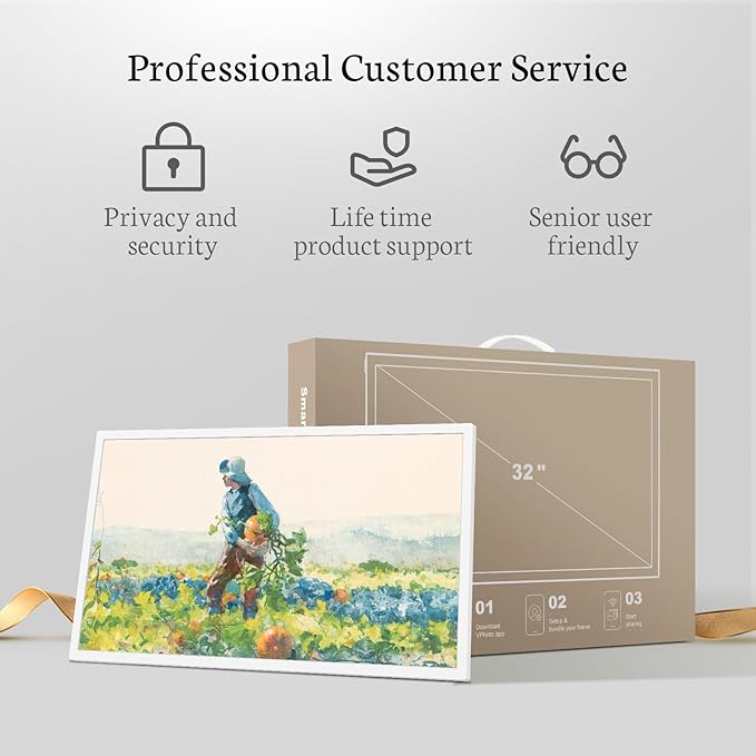 - Professional Large Digital Picture Frame: This photo frame electronic showcasing your art collection and cherished memories with sharp datails and extra-clear images for an even more expansive and enriching viewing experience. The digital picture frame large enable you to share video clips and photos securely and privately via WiFi from anywhere via VPhoto app & email, you can share the digital frames for photos code with your friends, and invite them to add photos to the same frame, enjoy and view everyone's pictures, which makes the photos displayed in one place to bring all precious moments to alive.