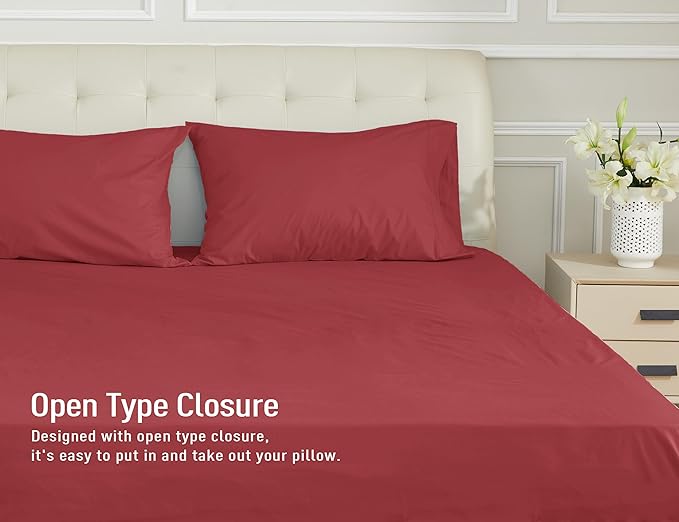 Sunflower King Pillowcases Set of 2, 100% Cotton King Size Pillow Cases 2, 20×40 inches Jester Red, Soft and Breathable