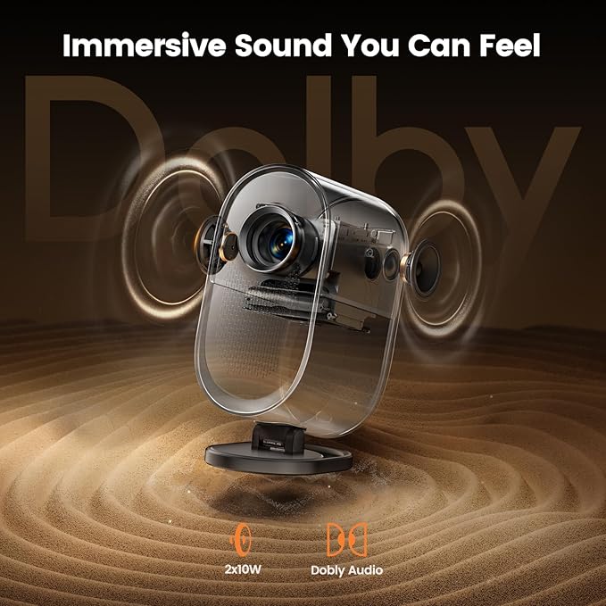 - [Cinematic Sound & Two-way Bluetooth] With a major leap in audio quality compared to earlier models, K11 movie projector supports Digital and include dual 10W speakers, providing crystal-clear, dynamic surround sound. HDMI ARC compatibility enables direct connection to your home sound system, while two-way Bluetooth and standalone Bluetooth speaker modes allow wireless pairing with mobile devices or external speakers. Whether for a home theater setup or an outdoor movie night, the K11 delivers an immersive experience.