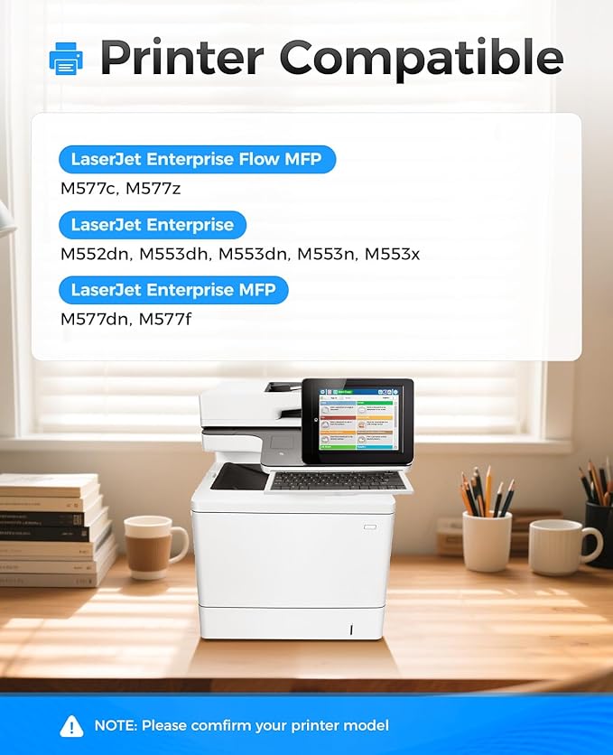 - Compatible Printers: Compatible with HP Color LaserJet Enterprise Flow MFP M577c M577z; Color LaserJet Enterprise M552dn M553dh M553dn M553n M553x; Color LaserJet Enterprise MFP M577dn M577f Series Printer.