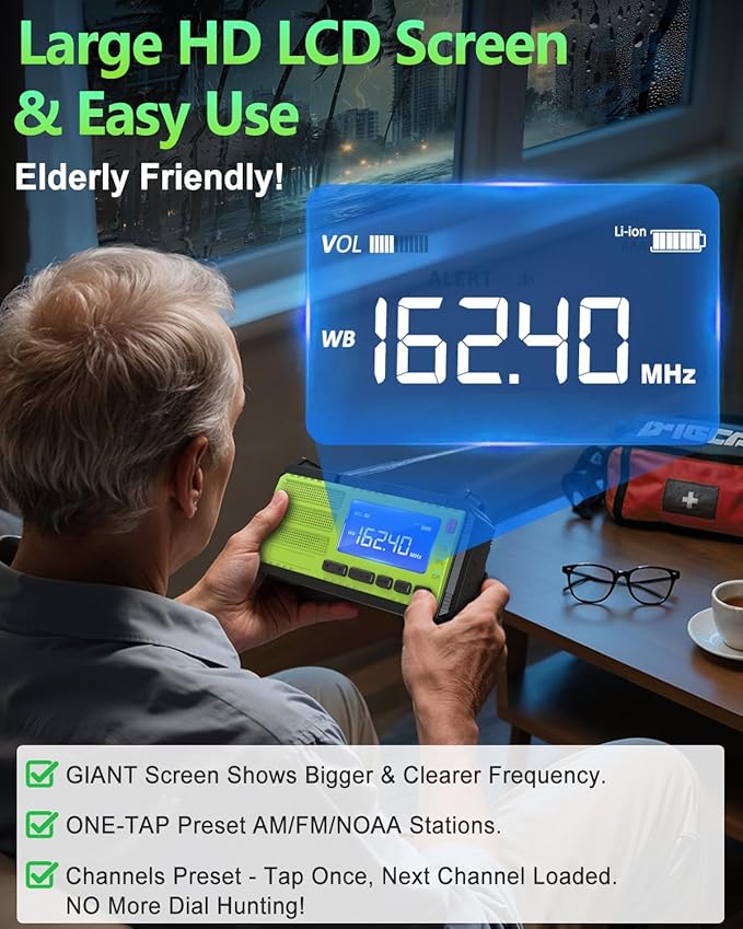 - [Reliable Emergency Companion with 18-Month Replacement]: Whether it’s a blackout, severe weather, or any emergency, this weather radio provides the peace of mind you need. Backed by an 18-month replacement and 24/7 support, you can add this radio to your emergency kit with total confidence.