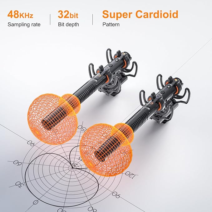 - 【32GB File Storage, 40 Hours of Internal Recording】The VM40 shotgun boom microphone has a built-in 32GB storage capacity, allowing you to record audio for up to 40 hours. Users can back up audio during shooting and recording or use the microphone as a recorder, ensuring the integrity of audio files and providing a reliable and secure solution for all your recording needs.