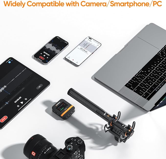 - 【48kHz/32-Bit Float Recording, Wired/Wireless Dual Modes】The Comica VM40 shotgun microphone incorporates Comica’s patented integrated wireless RF module, enabling smooth operation in both wired and wireless modes. With 48kHz/32-bit float recording, the VM40 camcorder microphone, offers an expanded dynamic range, making post-production easier for creators, provides a versatile and professional solution for your recording needs.