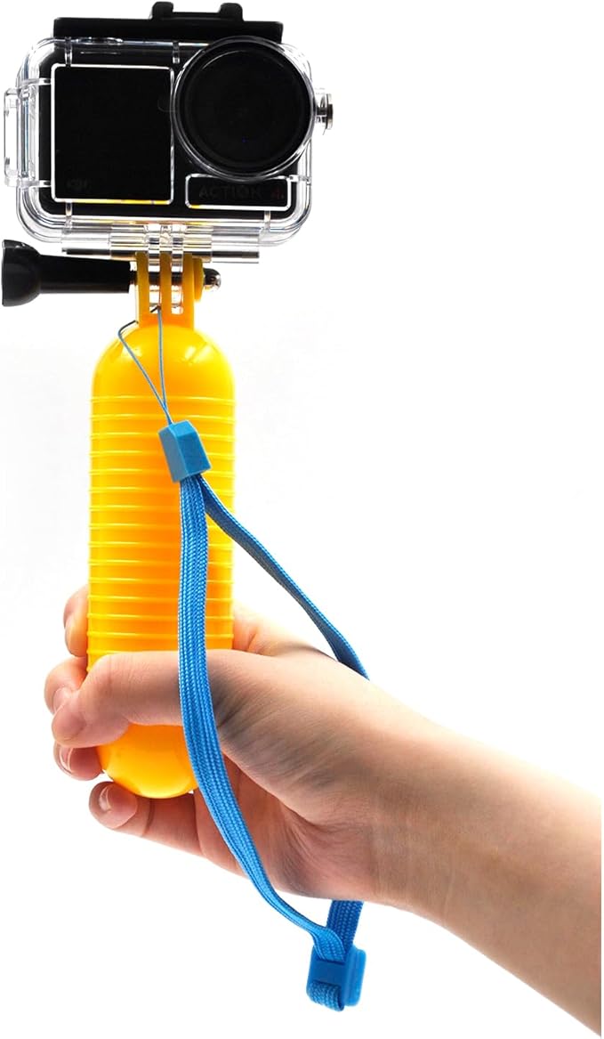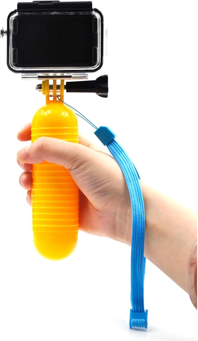 - 【Floating Handle】The bright yellow floating handle paired with an anti fall wristband ensures that even if you accidentally release it, your camera will not sink to the bottom, ensuring the safety of your device. The handle is made of comfortable materials with anti slip texture on the surface, providing a safer grip and making it easier for you to capture underwater scenery.