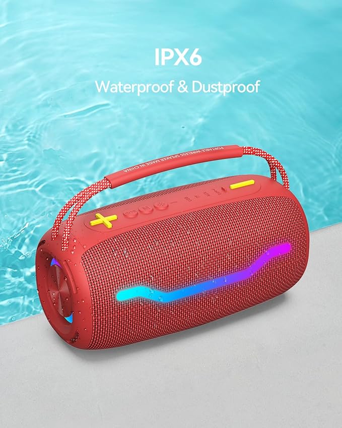 - 【Tough & Weather-Resistant】Engineered to handle rough use and adverse weather conditions, this speaker features a durable handle design and an IPX6 rating for protection against water splashes and spills. It's an ideal choice for outdoor events, and is perfect for use at parties, at the pool, on the beach, while camping or hiking, and more.