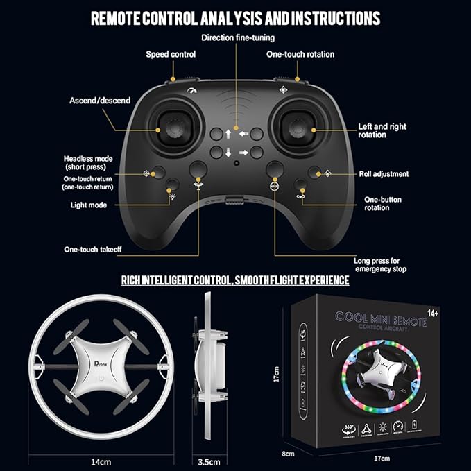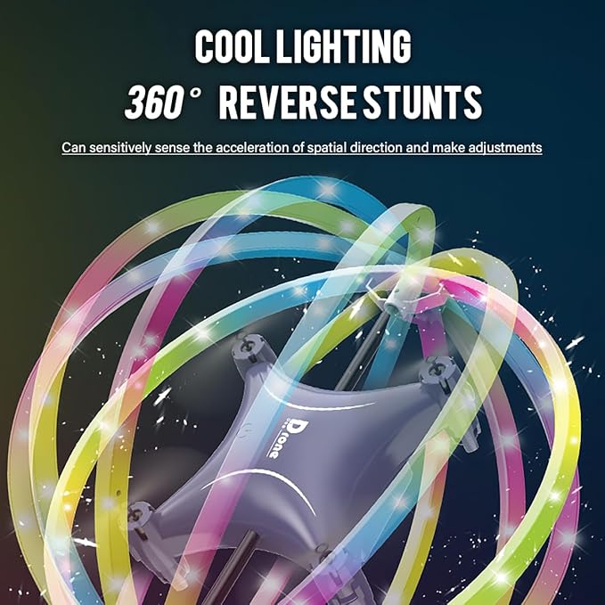 - Rotating stunts: The round bright LED light strip of the drone emits colorful neon lights, bringing you gorgeous lighting effects and vivid flight experience. I believe it will bring you surprises.