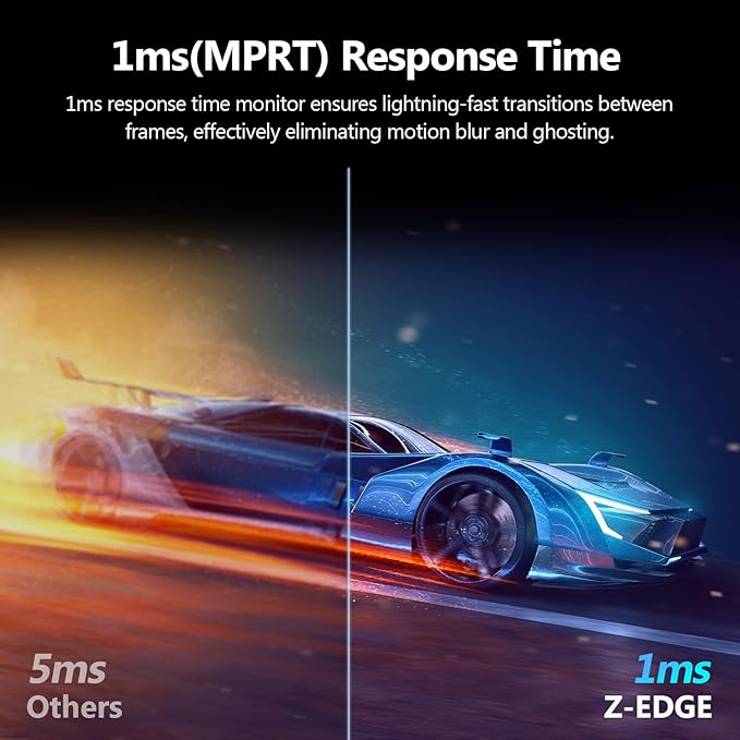 - 1ms Response Time : Say goodbye to motion blur and ghosting, ensuring your actions are reflected on screen with razor-sharp precision. With such minimal input lag, this monitor delivers a truly immersive and responsive gaming experience, enabling you to react faster and make critical decisions in the heat of battle. Flicker free eliminates screen tearing and stuttering, providing fluid visuals that keep pace with your gameplay