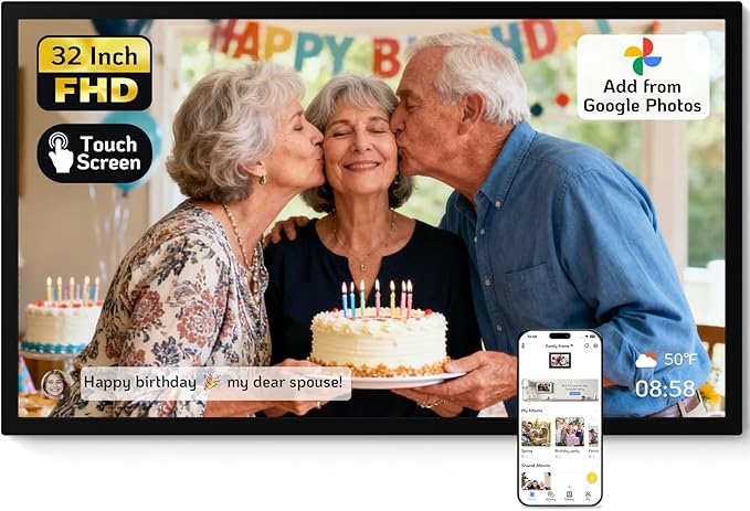 NexFoto 32 Inch Touchscreen Large Digital Picture Frame, 64GB FHD WiFi Digital Photo Frame, Add Photos from Google Photos, Easy to Share Videos, Send Greeting, Gifts for Housewarming, Black