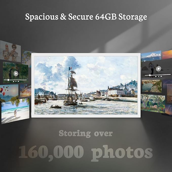 - Apply to Any Scenes: Wall-mounted design makes it can be easily rotated when mounted on the wall for better viewing experience (NOTE:Swivel wall mount not included), you can enjoy the lifelike images like standing in a gallery with art painting decoration. This large digital picture frame can find applications in a variety of scenarios such as offices, restaurants, hotels, exhibitions and more. It can also display family photos in the living room, products in the office, events in shops, menus in restaurants and more. With its sleep mode function, you can conveniently schedule the digital photo album and switch it off to enhance convenience of your daily life. It's perfect for life and work.