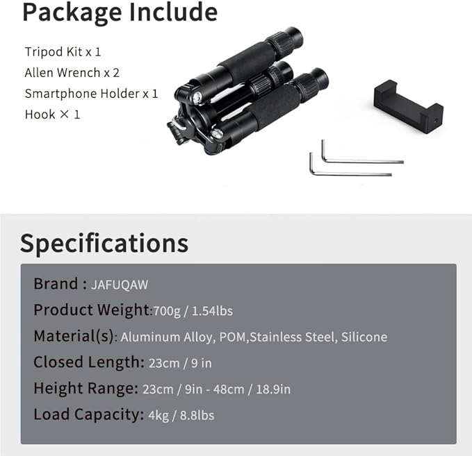 - 【Expandability & Package Includes】The package comes with a phone holder can be used for cell phone shooting. The package includes a tripod*1, allen wrench*2, and phone holder*1.