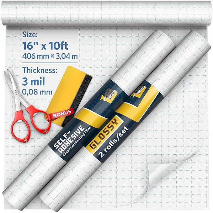 - 🦙Extra-Wide Laminating Rolls: Each roll in this 2-pack measures 16 inches wide, making them among the widest laminate roll available. Ideal clear contact paper peel and stick for preserving oversized documents, crafting, or creating seamless displays, these clear glossy self-adhesive laminating roll set delivers perfect results without the need for heat or additional tools.
