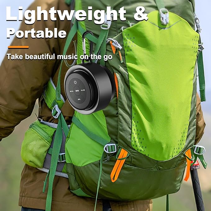 - Lightweight Portable& Give Suction Cup and Clip: Designed as a portable speaker, this small speaker have durable clip. You can comfortable in your hand or hang the speaker in bicycle or backpack easily. The waterproof Bluetooth speaker comes with an in-built suction cup that can attach to any smooth surface, including desk, wall, window, back side of phone or tablet