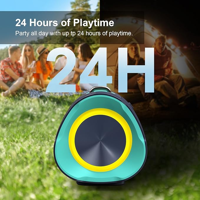 - 24 Hours of Playtime: With a remarkable 24-hour battery life, this speaker ensures the party lasts from sunrise to sunset. Whether you're moving from room to room, hitting the beach, or hosting a backyard bash, this speaker is your ultimate entertainment companion. Plus, its built-in power bank feature lets you charge your devices anywhere.