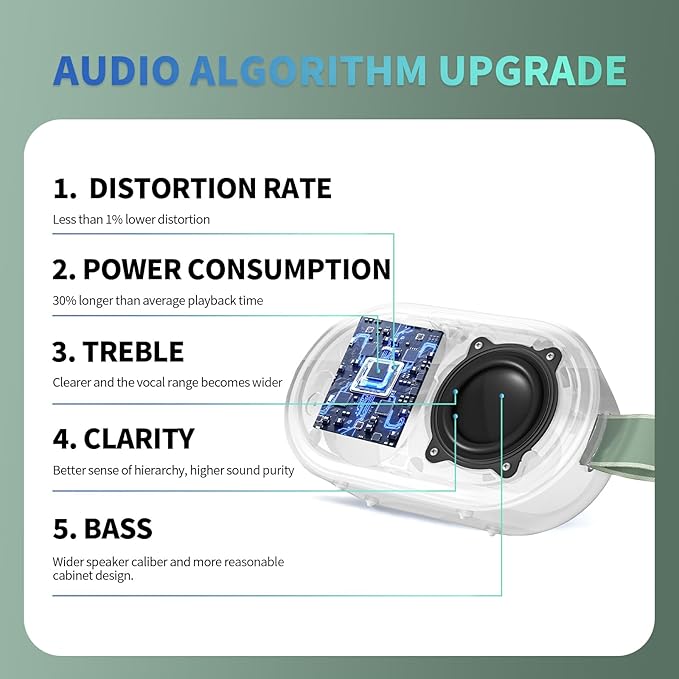 - Speaker Bluetooth 5.4 Wireless Stereo Function(TWS): The portable speaker bluetooth wireless uses Bluetooth 5.4, the clip on speaker support two paired wireless stereo sound. And Built-in microphone for hands-free calling with clear sound quality