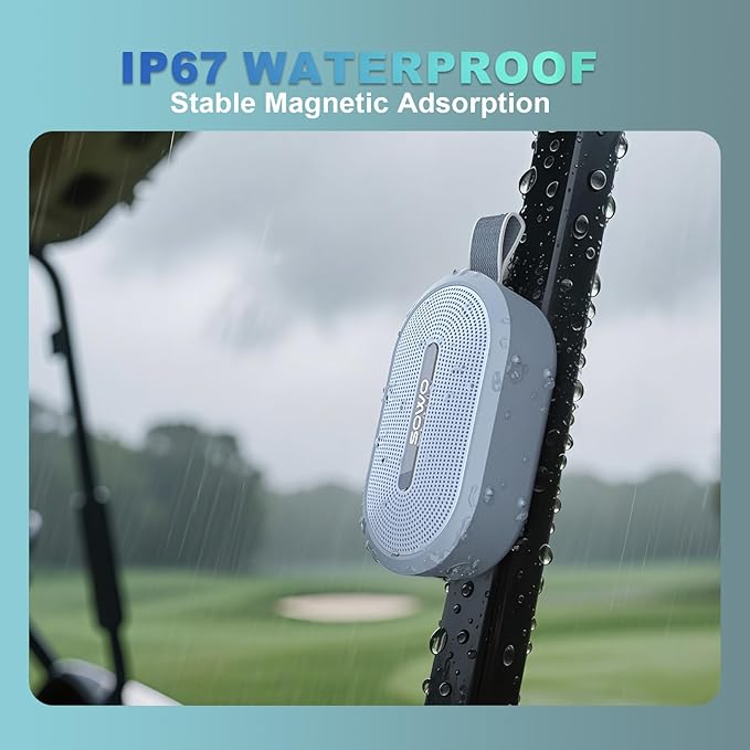 SOWO Wireless Portable Small Speaker, Ultra Magnetic Bluetooth Speaker for Golf Cart, Coverless IP67 Waterproof, 24 H Playtime, Pro Sound, Clip Hanging Design for Outdoor, Indoor - Blue