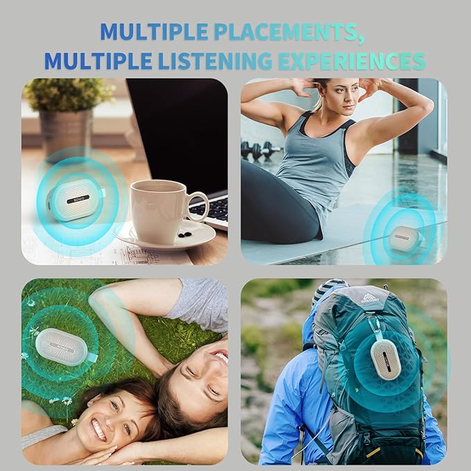 - Speaker Bluetooth 5.4 Wireless Stereo Function(TWS): The portable speaker bluetooth wireless uses Bluetooth 5.4, the clip on speaker support two paired wireless stereo sound. And Built-in microphone for hands-free calling with clear sound quality