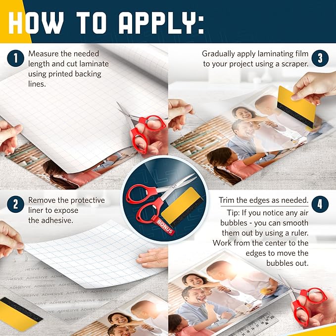 - 📃EASY TO USE: With a clear contact paper peel and stick design, these removable contact paper rolls are easy to apply, ensuring smooth, bubble-free results. Whether you’re a beginner or an expert, self adhesive laminating roll makes laminating quick and hassle-free.