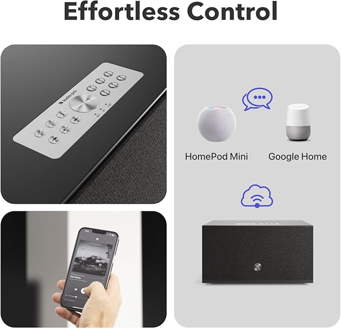 - Hands-Free Voice Control: Effortlessly control your music with Google Assistant or Siri for a hands-free experience, while enjoying seamless integration with your smart home setup. Note: Requires a phone, HomePod, or Google Home device for voice control.