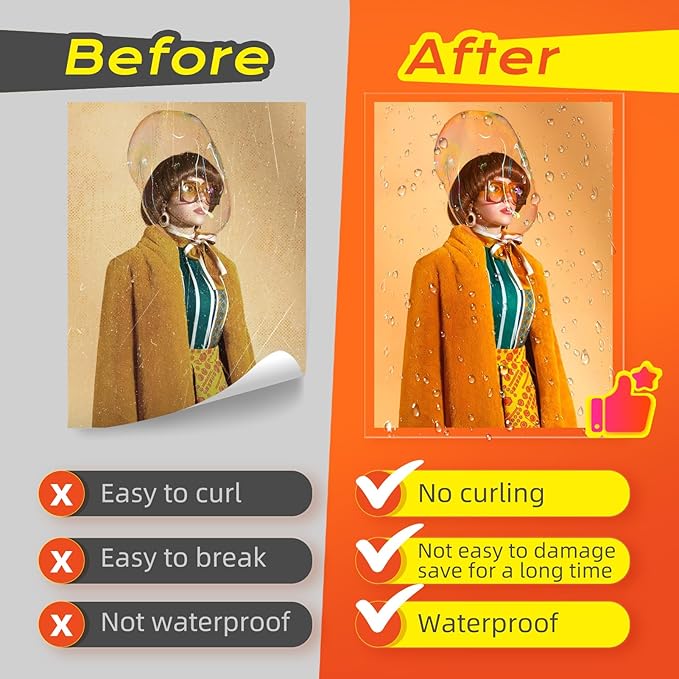 - WIDE APPLICATION:It is perfect for protecting your photos, certificates, cards, recipes, stickers, stencils,planner decorations, to-do lists, recipe cards, and schedulers,collected news and magazine ,and more because our self-adhesive laminated paper is waterproof, transparent, sticky, and wipeable.Don't limit your imagination, and just create.