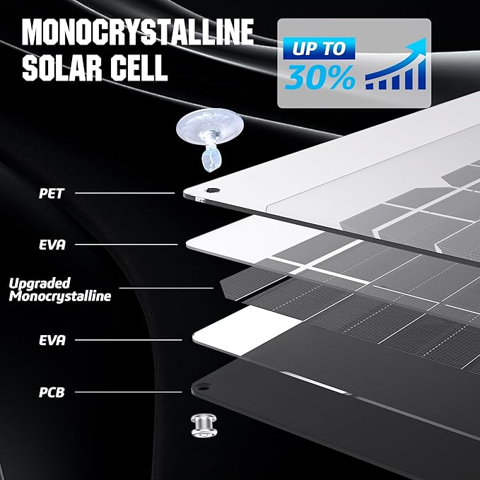 - More Durable:The PET material can be waterproof and dustproof. A layer of epoxy board is added as a bottom plate, which is more sturdy (the broken panel will cause the charging efficiency to decrease). You can contact us at any time if you have any questions