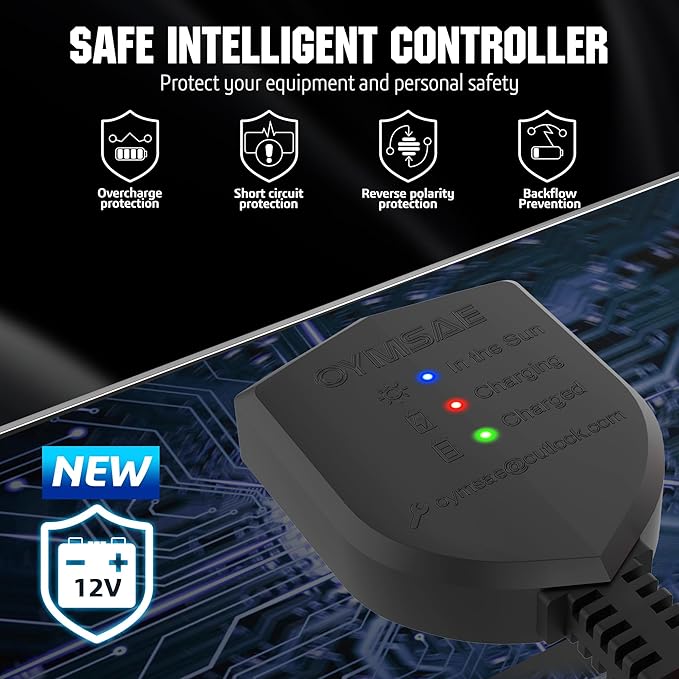 OYMSAE 12V Solar Battery Charger ,5W Waterproof Solar Battery Maintainer,Portable Solar Panel Charger with Upgraded Controller for Car, Motorcycle, Boat, Marine, RV, Trailer, Tractor,Truck, etc