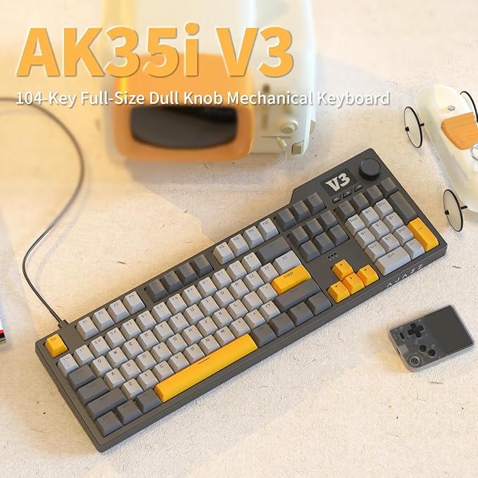 - 【Programmable Macro and Volume Control】 Functions Full-size gaming keyboard with slider control for easy volume down/up/play/pause.The AK35i V3 is a highly efficient mechanical keyboard equipped with a numeric keypad that greatly enhances the productivity of programmers and typists. The programmable macro feature is perfect for those who like to try new things and experiment with customization.