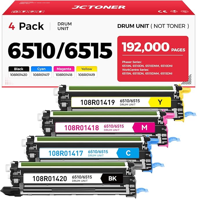 - Package Contents: Total 4 pack 6510/6515 Drum Unit, (1*Black 108R01420 Drum, 1*Cyan 108R01417 Drum, 1*Magenta 108R01418 Drum, 1*Yellow 108R01419 Drum).