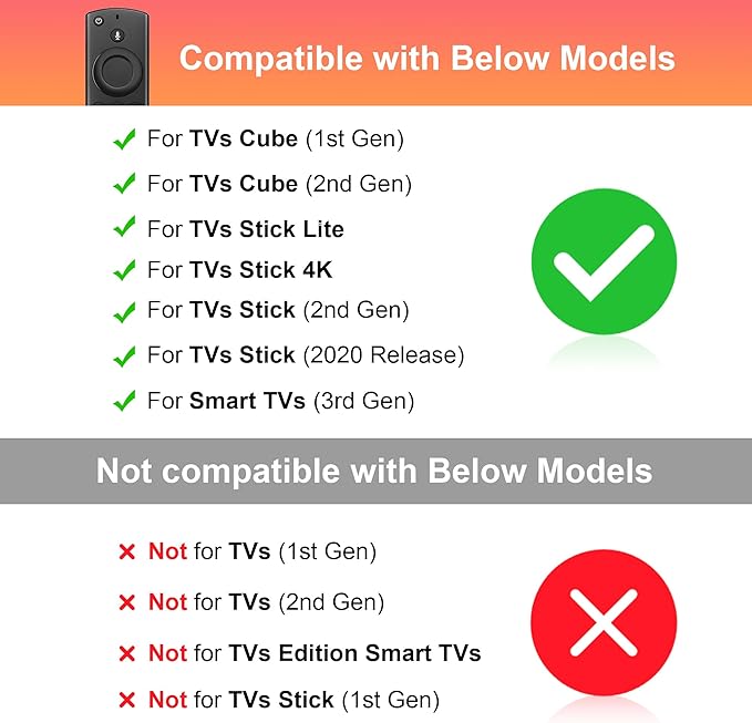- COMPATIBLE MODELS: This 2nd Gen Replacement Voice Remote fit for Smart TVs Stick 2020 Release, Smart TVs Stick Lite, Smart TVs Stick (2nd Gen), Smart TVs Stick 4K,Smart TVs Cube (2nd Gen),Smart TVs Cube (1st Gen),and AMZ Smart TVs (3rd Gen)