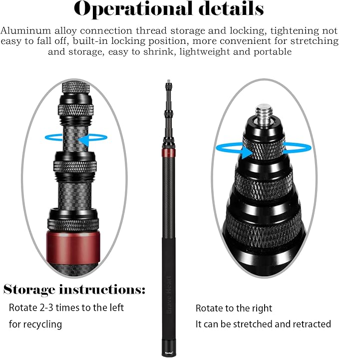 - Secure and Stable Grip: The ergonomic handle provides a comfortable and secure grip, while the sturdy construction ensures your Insta360 camera remains stable, even at full extension. The intuitive design allows for quick setup and effortless operation:Extend, lock, and start shooting in seconds β no complicated adjustments required.
