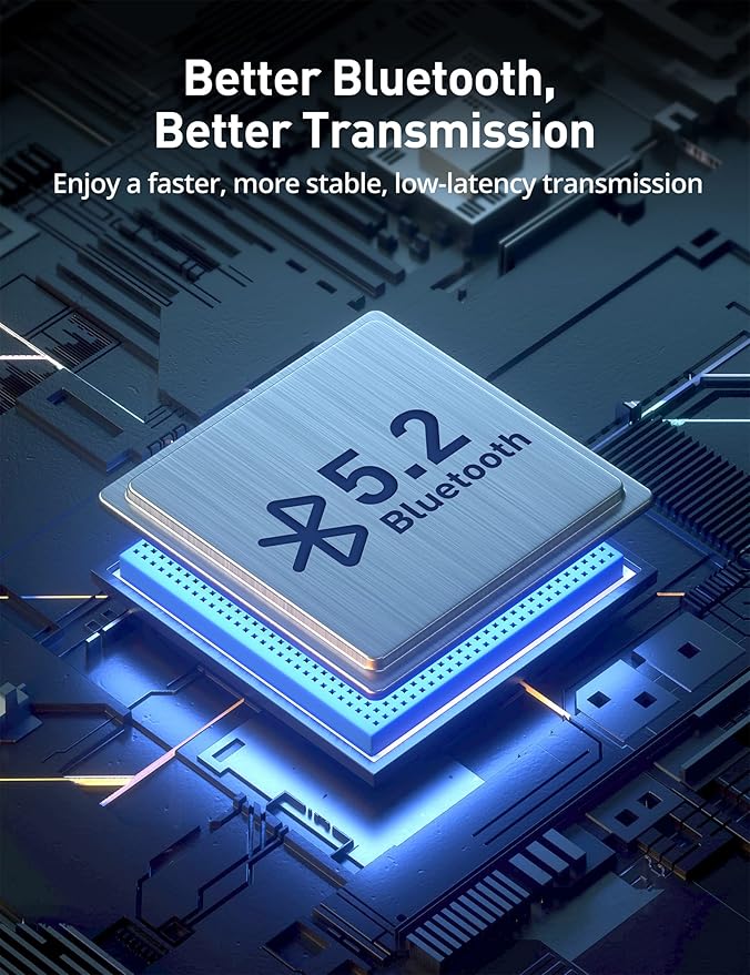 - Enhanced Bluetooth Connectivity: Stay seamlessly connected with the latest Bluetooth technology! Powered by advanced Bluetooth 5.2, our earbuds offer faster, rock-solid, and ultra-low latency connectivity. Say goodbye to dropped signals and music interruptions, even when you're up to 33ft away from your device. Immerse yourself in an authentic musical experience that never misses a beat.