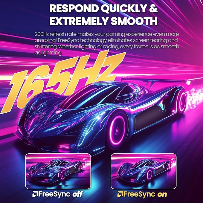 - Smooth & Tear-Free Gaming with 165Hz FreeSync: PC monitors Enjoy a 165Hz refresh rate with AMD FreeSync support for smooth, tear-free gameplay. Minimizing motion blur and providing crisp visuals for fast-paced games. Experience seamless performance with no screen tearing or stuttering for an enhanced gaming experience